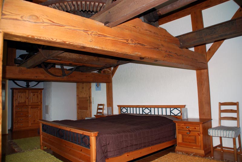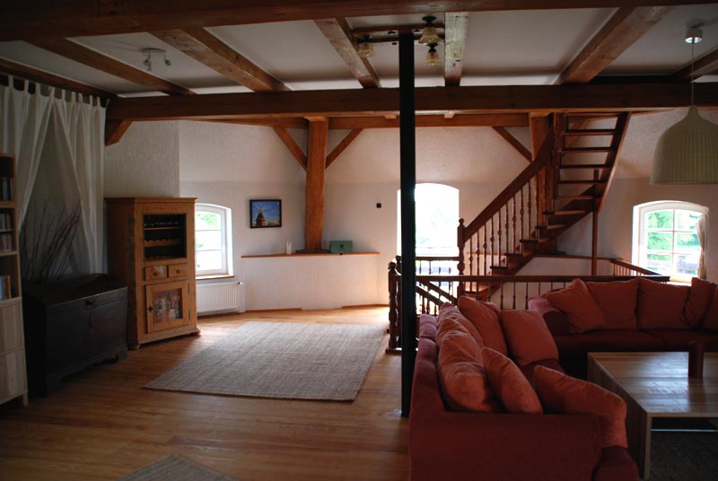 Obergeschoß, in dem noch ein Teil der alte Mühlentechnik